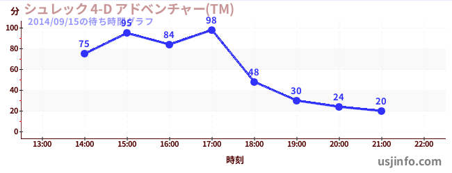 • シュレック 4-D アドベンチャー(TM)$B$N(B2014年09月15日の待ち時間