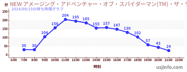 • NEW アメージング・アドベンチャー・オブ・スパイダーマン(TM)・ザ・ライド 4K3D$B$N(B2014年09月15日の待ち時間