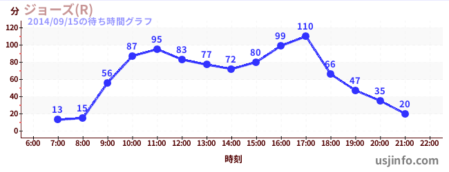 • ジョーズ(R)$B$N(B2014年09月15日の待ち時間