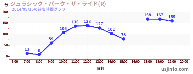 • ジュラシック・パーク・ザ・ライド(R)$B$N(B2014年09月15日の待ち時間