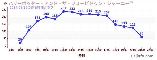 • ハリーポッター・アンド・ザ・フォービドゥン・ジャーニー™$B$N(B2014年09月15日の待ち時間