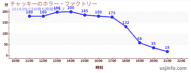 • チャッキーのホラー・ファクトリー$B$N(B2014年09月15日の待ち時間