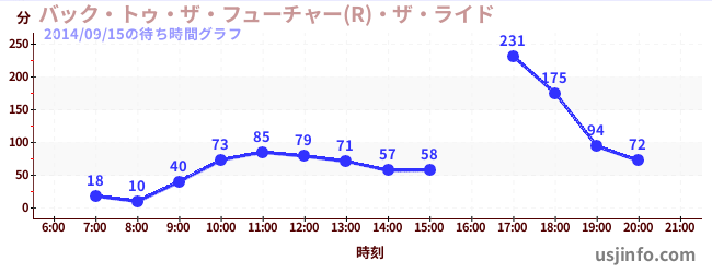 • バック・トゥ・ザ・フューチャー(R)・ザ・ライド$B$N(B2014年09月15日の待ち時間
