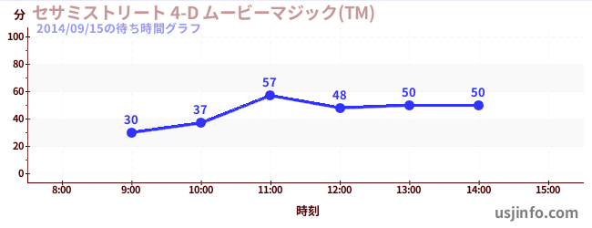 • セサミストリート 4-D ムービーマジック(TM)$B$N(B2014年09月15日の待ち時間