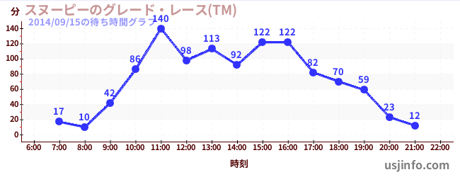 • スヌーピーのグレード・レース(TM)$B$N(B2014年09月15日の待ち時間