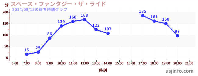 • スペース・ファンタジー・ザ・ライド$B$N(B2014年09月15日の待ち時間