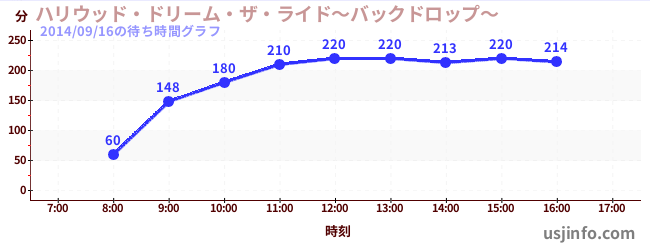 • ハリウッド・ドリーム・ザ・ライド〜バックドロップ〜$B$N(B2014年09月16日の待ち時間