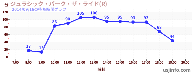 • ジュラシック・パーク・ザ・ライド(R)$B$N(B2014年09月16日の待ち時間