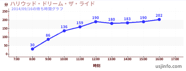 • ハリウッド・ドリーム・ザ・ライド$B$N(B2014年09月16日の待ち時間