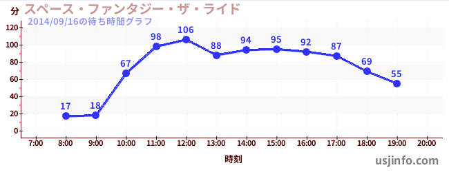 • スペース・ファンタジー・ザ・ライド$B$N(B2014年09月16日の待ち時間