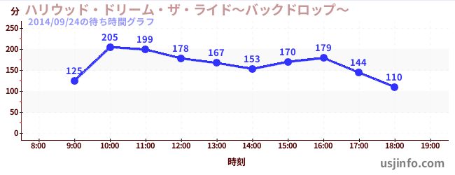 • ハリウッド・ドリーム・ザ・ライド〜バックドロップ〜$B$N(B2014年09月24日の待ち時間