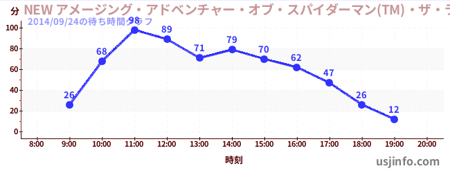 • NEW アメージング・アドベンチャー・オブ・スパイダーマン(TM)・ザ・ライド 4K3D$B$N(B2014年09月24日の待ち時間