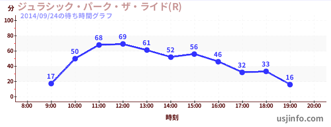 • ジュラシック・パーク・ザ・ライド(R)$B$N(B2014年09月24日の待ち時間