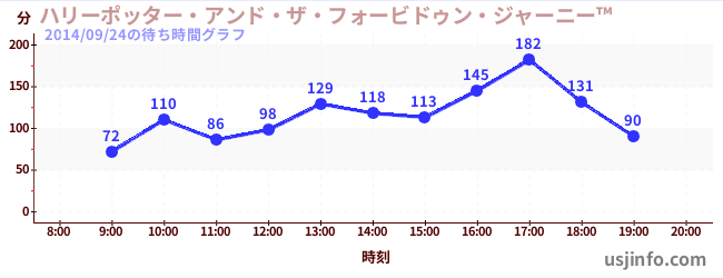• ハリーポッター・アンド・ザ・フォービドゥン・ジャーニー™$B$N(B2014年09月24日の待ち時間