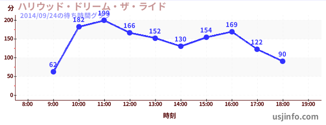 • ハリウッド・ドリーム・ザ・ライド$B$N(B2014年09月24日の待ち時間