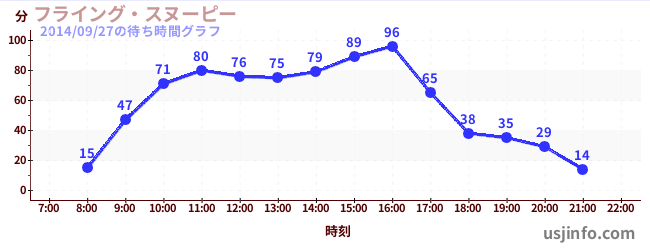 • フライング・スヌーピー$B$N(B2014年09月27日の待ち時間