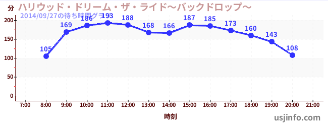 • ハリウッド・ドリーム・ザ・ライド〜バックドロップ〜$B$N(B2014年09月27日の待ち時間