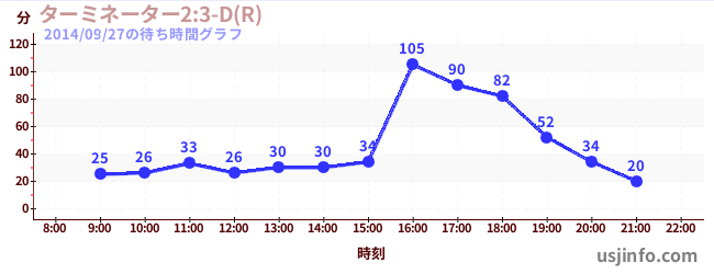• ターミネーター2:3-D(R)$B$N(B2014年09月27日の待ち時間