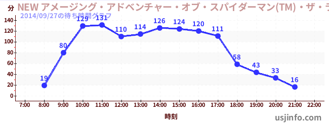 • NEW アメージング・アドベンチャー・オブ・スパイダーマン(TM)・ザ・ライド 4K3D$B$N(B2014年09月27日の待ち時間