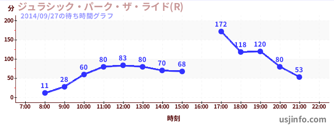 • ジュラシック・パーク・ザ・ライド(R)$B$N(B2014年09月27日の待ち時間