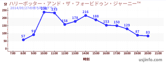 • ハリーポッター・アンド・ザ・フォービドゥン・ジャーニー™$B$N(B2014年09月27日の待ち時間