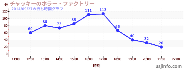 • チャッキーのホラー・ファクトリー$B$N(B2014年09月27日の待ち時間