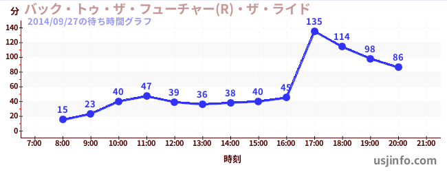 • バック・トゥ・ザ・フューチャー(R)・ザ・ライド$B$N(B2014年09月27日の待ち時間