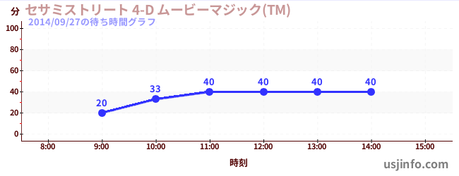• セサミストリート 4-D ムービーマジック(TM)$B$N(B2014年09月27日の待ち時間