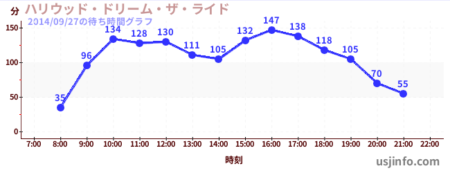 • ハリウッド・ドリーム・ザ・ライド$B$N(B2014年09月27日の待ち時間