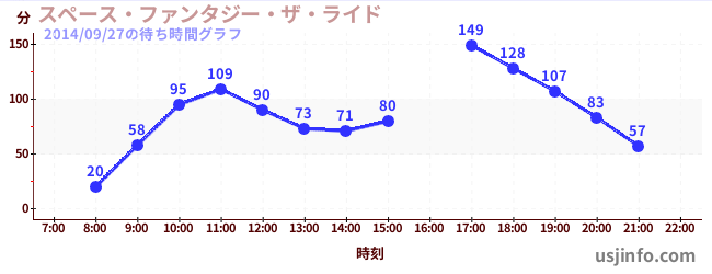 • スペース・ファンタジー・ザ・ライド$B$N(B2014年09月27日の待ち時間