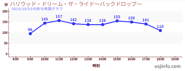 • ハリウッド・ドリーム・ザ・ライド〜バックドロップ〜$B$N(B2014年10月01日の待ち時間