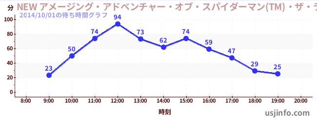 • NEW アメージング・アドベンチャー・オブ・スパイダーマン(TM)・ザ・ライド 4K3D$B$N(B2014年10月01日の待ち時間