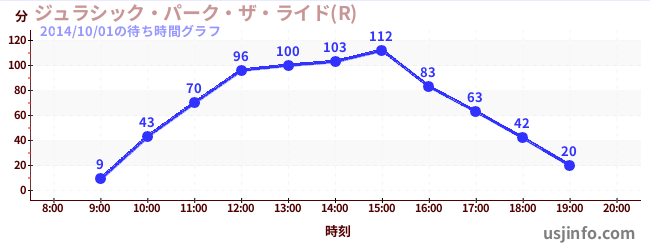 • ジュラシック・パーク・ザ・ライド(R)$B$N(B2014年10月01日の待ち時間