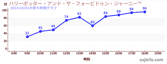 • ハリーポッター・アンド・ザ・フォービドゥン・ジャーニー™$B$N(B2014年10月01日の待ち時間