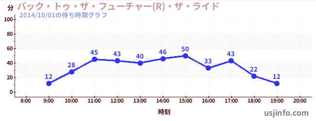 • バック・トゥ・ザ・フューチャー(R)・ザ・ライド$B$N(B2014年10月01日の待ち時間