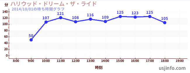 • ハリウッド・ドリーム・ザ・ライド$B$N(B2014年10月01日の待ち時間
