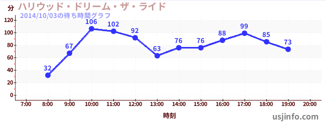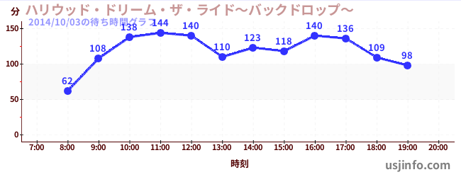 • ハリウッド・ドリーム・ザ・ライド〜バックドロップ〜$B$N(B2014年10月03日の待ち時間