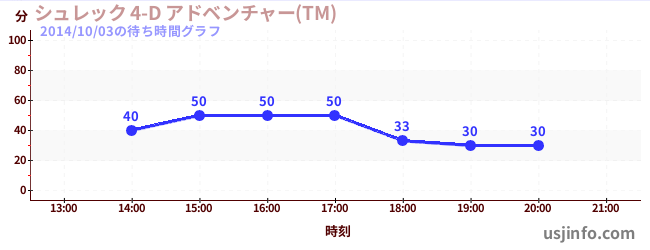• シュレック 4-D アドベンチャー(TM)$B$N(B2014年10月03日の待ち時間