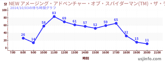 • NEW アメージング・アドベンチャー・オブ・スパイダーマン(TM)・ザ・ライド 4K3D$B$N(B2014年10月03日の待ち時間