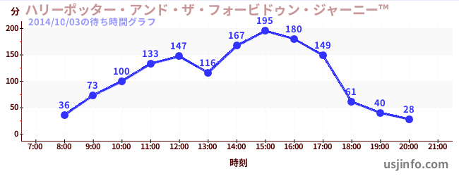 • ハリーポッター・アンド・ザ・フォービドゥン・ジャーニー™$B$N(B2014年10月03日の待ち時間