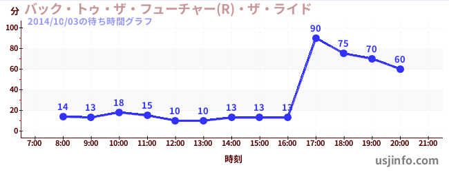 • バック・トゥ・ザ・フューチャー(R)・ザ・ライド$B$N(B2014年10月03日の待ち時間