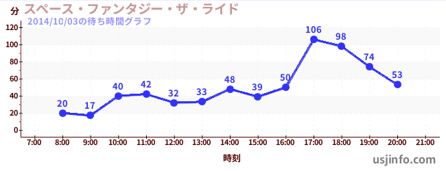 • スペース・ファンタジー・ザ・ライド$B$N(B2014年10月03日の待ち時間