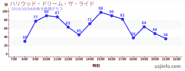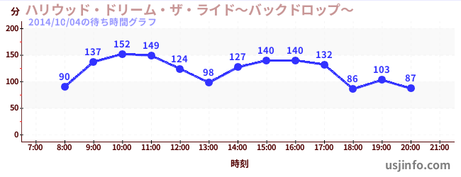 • ハリウッド・ドリーム・ザ・ライド〜バックドロップ〜$B$N(B2014年10月04日の待ち時間