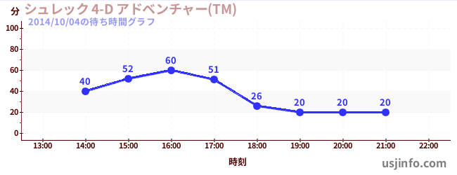 • シュレック 4-D アドベンチャー(TM)$B$N(B2014年10月04日の待ち時間