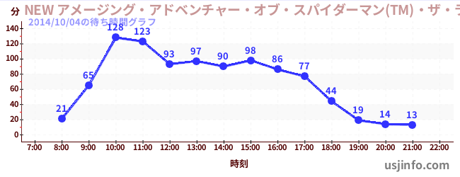 • NEW アメージング・アドベンチャー・オブ・スパイダーマン(TM)・ザ・ライド 4K3D$B$N(B2014年10月04日の待ち時間