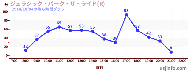 • ジュラシック・パーク・ザ・ライド(R)$B$N(B2014年10月04日の待ち時間