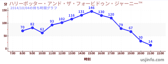• ハリーポッター・アンド・ザ・フォービドゥン・ジャーニー™$B$N(B2014年10月04日の待ち時間