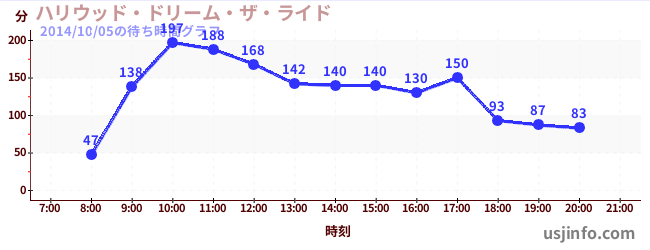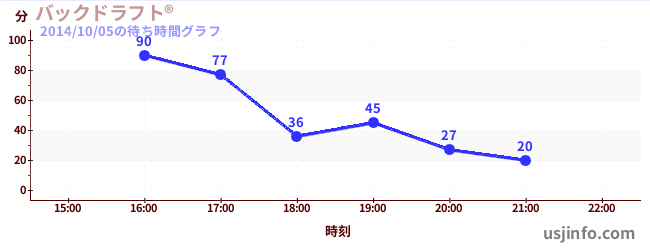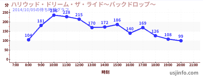 • ハリウッド・ドリーム・ザ・ライド〜バックドロップ〜$B$N(B2014年10月05日の待ち時間