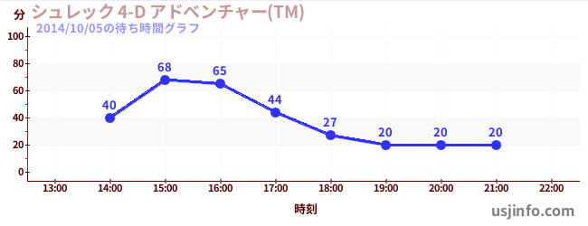 • シュレック 4-D アドベンチャー(TM)$B$N(B2014年10月05日の待ち時間