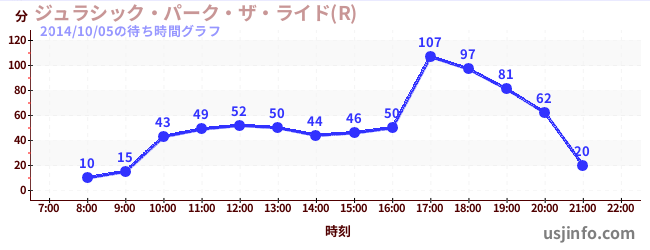 • ジュラシック・パーク・ザ・ライド(R)$B$N(B2014年10月05日の待ち時間